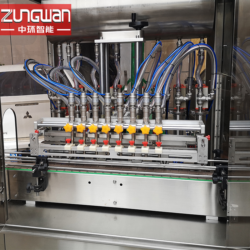 機(jī)器特點(diǎn):全自動液體灌裝機(jī)采用先進(jìn)的伺服電機(jī)控制的容積式灌裝技術(shù),更換任意一種灌裝規(guī)格只需在觸摸屏中修改參數(shù),能同時對8個頭的灌裝量進(jìn)行大幅度的整體調(diào)整,活塞密封件采用進(jìn)口材質(zhì)加工而成,耐腐蝕,耐磨,極大的提高了設(shè)備的使用壽命。